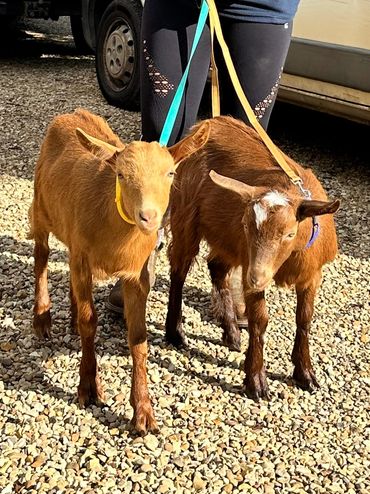 Our goats love people & love food! They are possibly the nosiest animals you will ever meet and have no manners! Make sure you are in old clothes that you don't mind getting dirty as these little guys will climb all over you, they have no boundaries! Spending time in their company is incredibly entertaining an relaxing